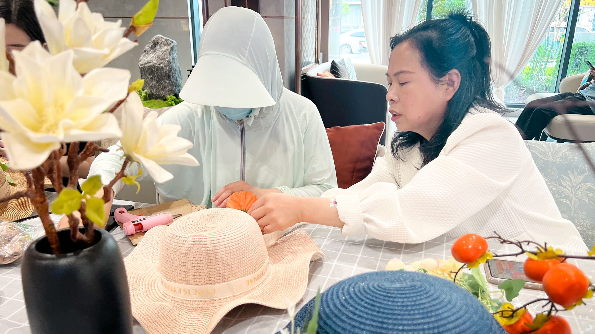 活動以"手作+社交"為核心,設置創意手工區及項目展示區。專業手工藝師現場示范花藝草帽制作方法,客戶們用花朵、樹葉、藤枝帽子為原料,自由創作,制作自己獨一無二的鮮花草帽。更有客戶將作品拍照上傳社交平臺,自發形成二次傳播熱潮。