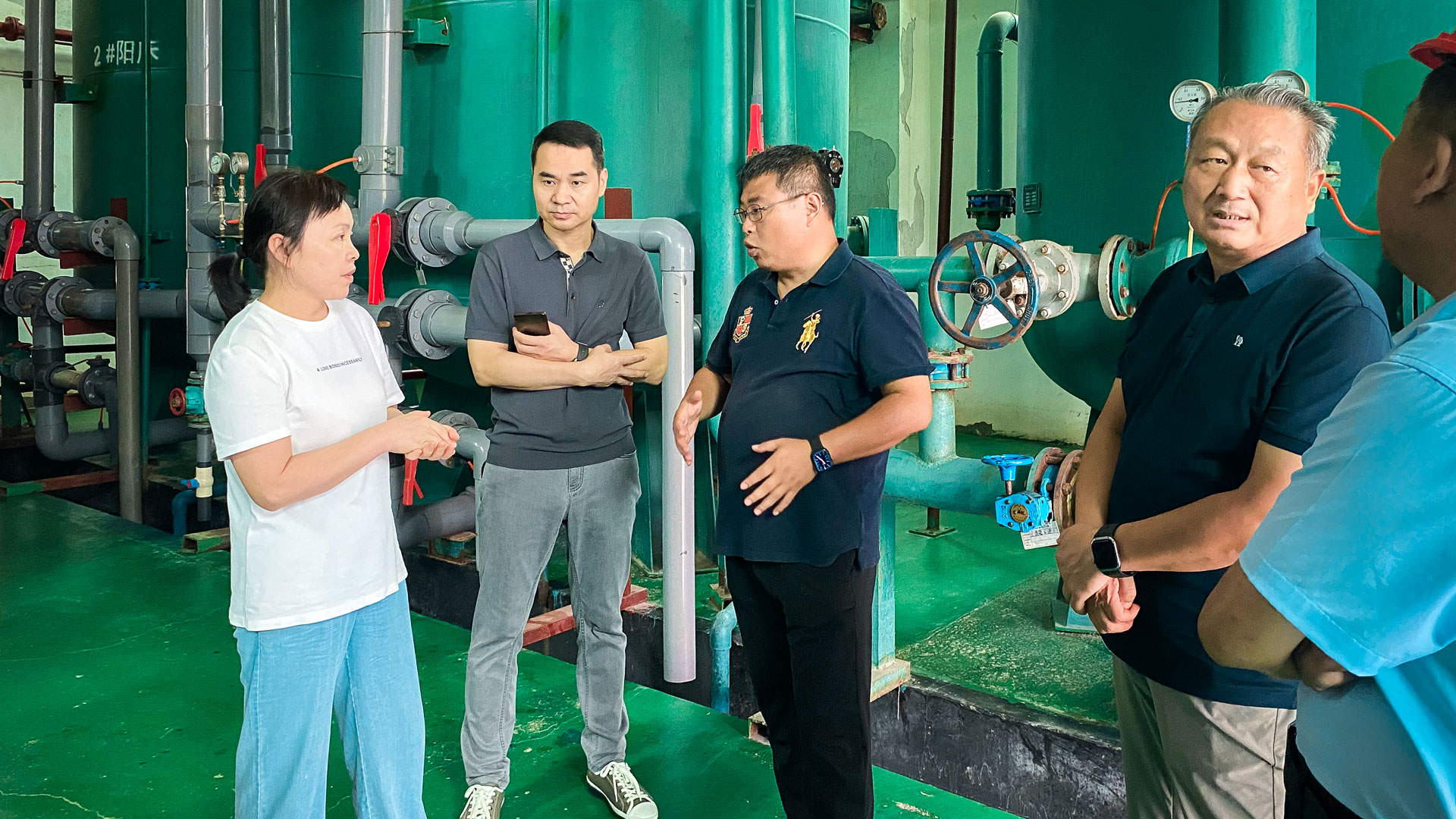 考察團一行首先深入振德生物質熱電廠制水車間,實地參觀制水設備運行狀態、生產負荷調控流程等環節,詳細向對方技術人員了解當前制水產能、工藝參數設置及日常運維重點。在隨后的交流座談中,雙方結合各自實際生產場景,圍繞 “提高制水率、減少制水耗材損耗、降低單位制水成本” 三大核心議題展開深入探討 —— 振德生物質熱電廠分享了其在耗材管控、工藝優化等方面的實操方法,考察團則針對自身水處理環節的現存疑問與對方交流解決方案,現場互動務實高效。
